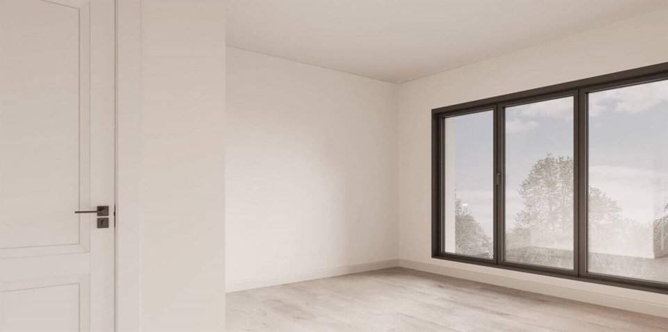 Потолки от 2,7 до 5,7 м и панорамные окна в алюминиевом профиле.
