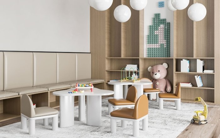 Отдельная игровая зона 73 м² в составе клуба резидентов и безопасные пространства для детей.