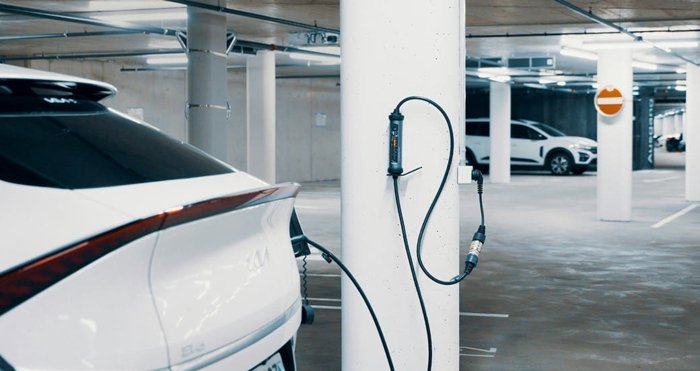 Паркинг на 217 мест с лифтом на жилые этажи и зарядками для электромобилей.
