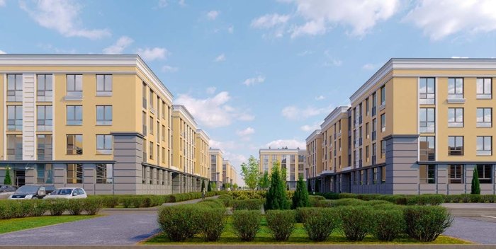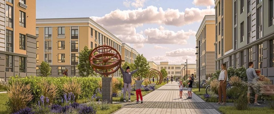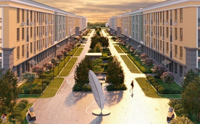 Проект состоит из четырехэтажных домов в неоклассическом стиле с закрытыми дворами, променадом, торговой галереей и собственной социальной инфраструктурой. В квартале есть квартиры с отделкой, французскими балконами, террасами, увеличенными окнами и высокими потолками на последних этажах.