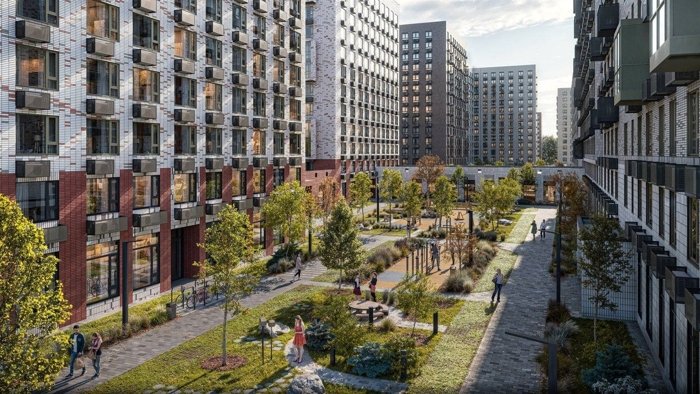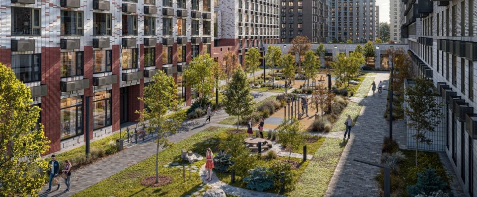 Это квартал из 7 жилых домов с закрытыми дворами-парками, пешеходным бульваром и подземным паркингом. В проекте есть квартиры с готовой отделкой, функциональные планировки, школа, два детских сада, поликлиника и коммерция на первых этажах.
