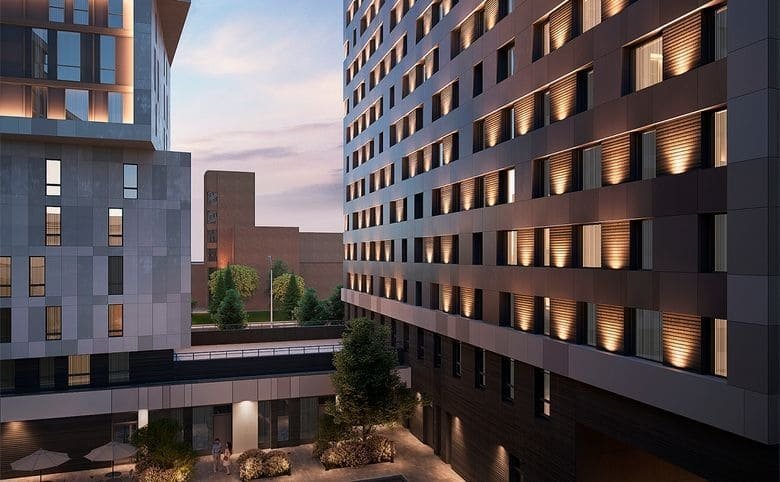 Это жилой корпус на 346 квартир и 12 этажей с эргономичными планировками, дизайнерскими холлами, пейзажным двором-парком, кладовыми, подземным и отдельным паркингом. Есть white box и полная отделка.