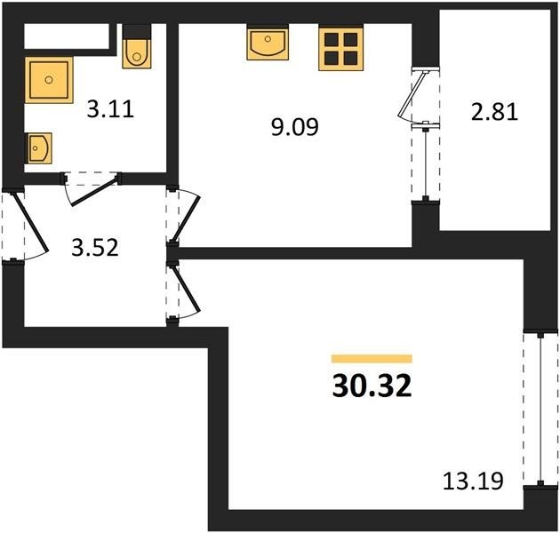 Площадь от 30.32 м2