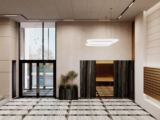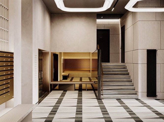 Центральная входная группа выполнена с авторским интерьером и арт-объектом.
