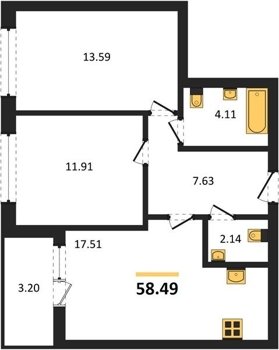 Площадь от 48.02 м2