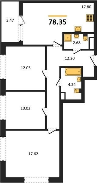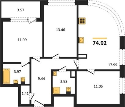 Площадь от 74.92 м2