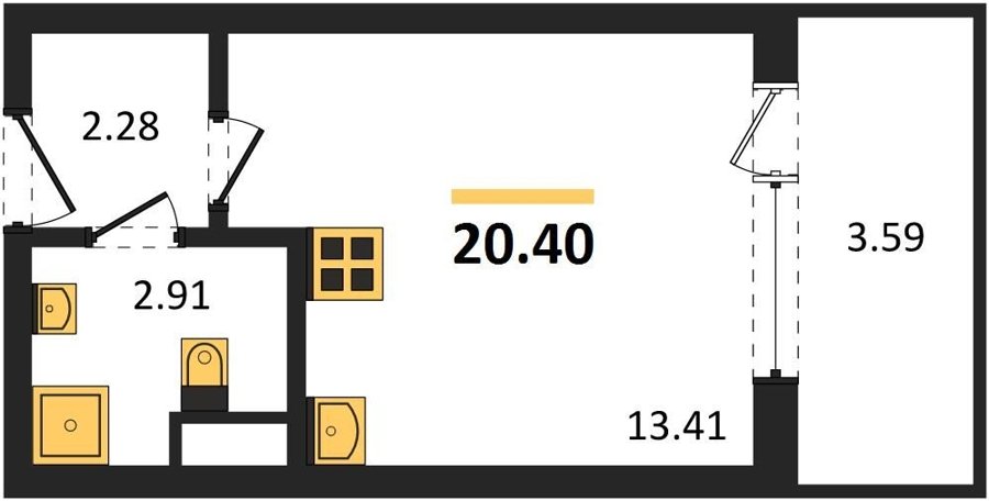 Площадь от 20.4 м2